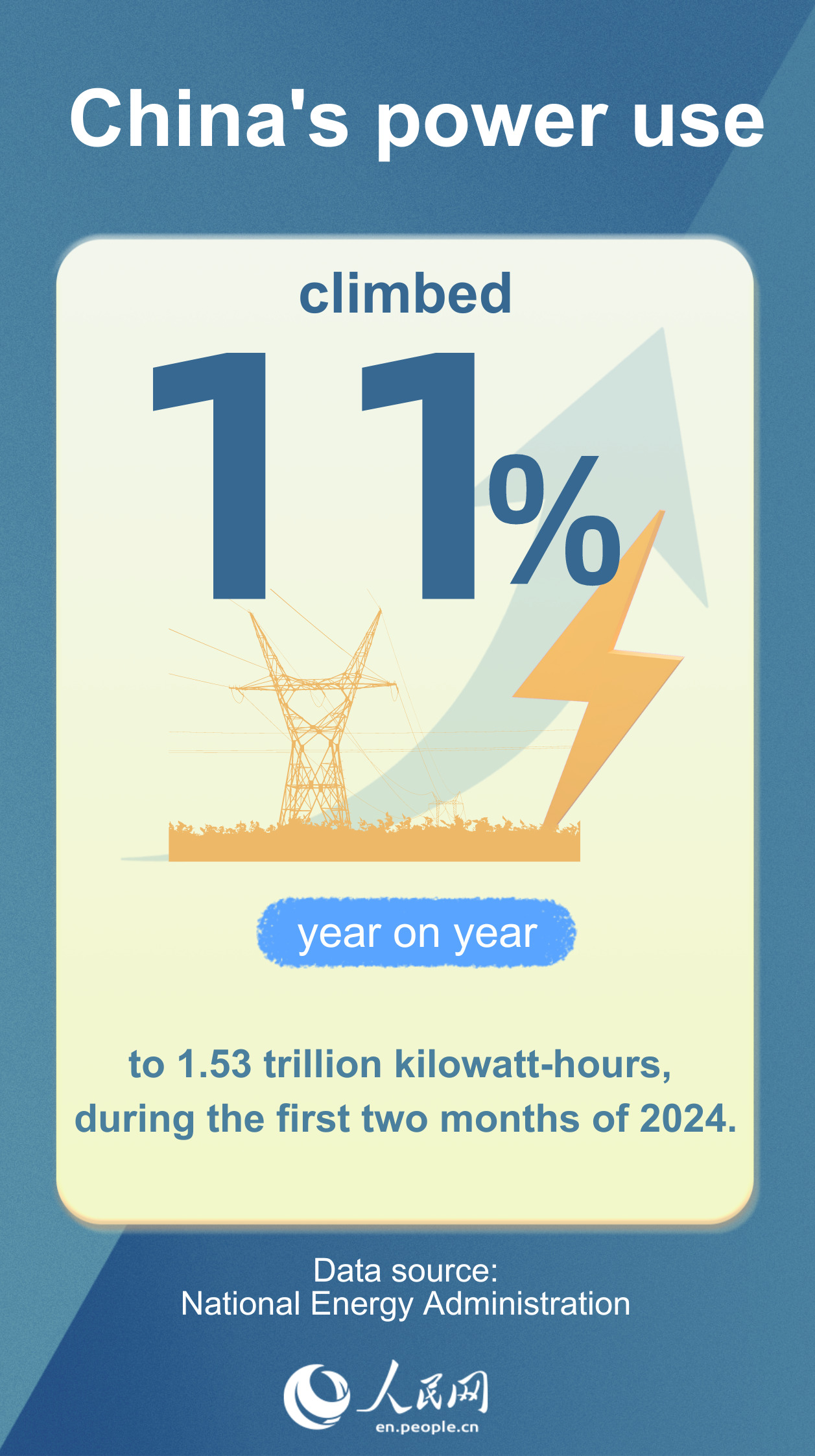 BEIJING, March 20 (Xinhua) -- China's electricity consumption, a key barometer of economic activity, logged robust expansion in the first two months of 2024, official data showed Wednesday.