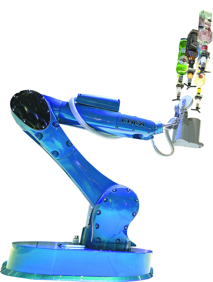 A robot bartender onboard Spectrum of the Seas, a large vessel of cruise line operator Royal Caribbean International. [Photo/China Daily]