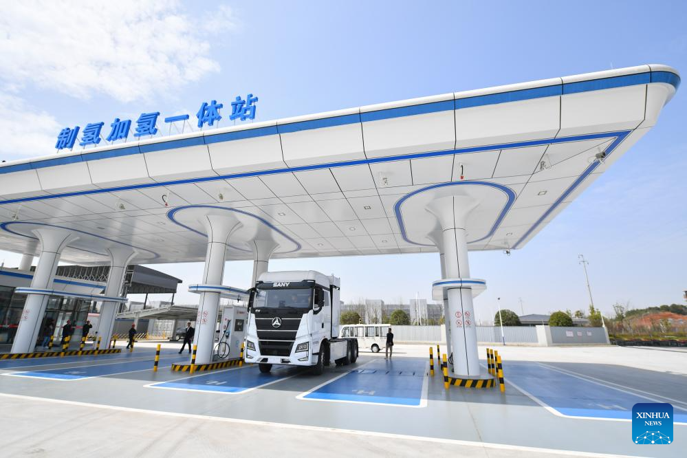 This photo taken on March 20, 2024 shows the hydrogen production and distribution station of Sany Group in Changsha, capital of central China's Hunan Province. (Xinhua/Chen Zeguo)