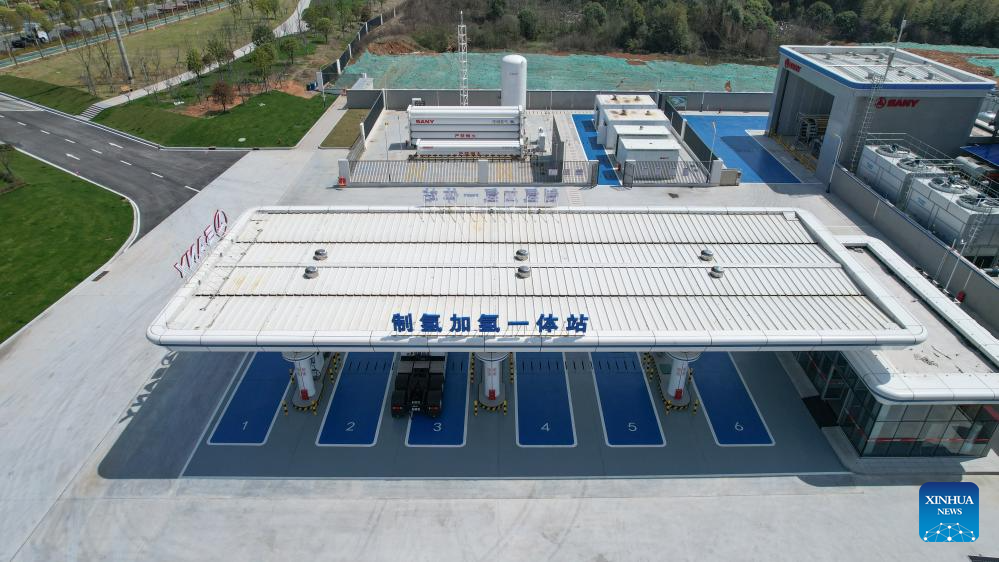 This aerial drone photo shows the hydrogen production and distribution station of Sany Group in Changsha, capital of central China's Hunan Province, March 20, 2024. (Xinhua/Chen Zeguo)