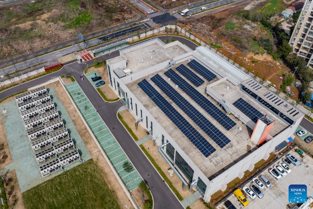 An aerial drone photo taken on March 19, 2024 shows the Energy station of the start-up area of the Sino-French Wuhan Ecological Demonstration City in Wuhan, central China's Hubei Province. This year marks the 10th anniversary since China and France signed the agreement to build the Sino-French Wuhan Ecological Demonstration City. The eco city, covering an area of 39 square kilometers, has integrated Chinese and French ecological urban construction concepts and is rising as a popular region for residents and companies. (Xinhua/Wu Zhizun)