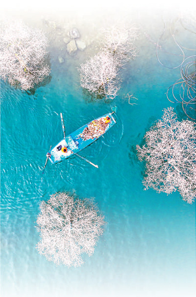Tourists have fun in the Hanfeng Lake scenic area in Kaizhou district, southwest China's Chongqing Municipality. (Photo/Wang Xiaoyu)