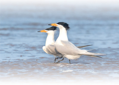 Photo shows Chinese crested terns at the Minjiang River estuary wetland in Changle district, Fuzhou, capital of southeast China's Fujian Province. (Photo/Zheng Peiluan)