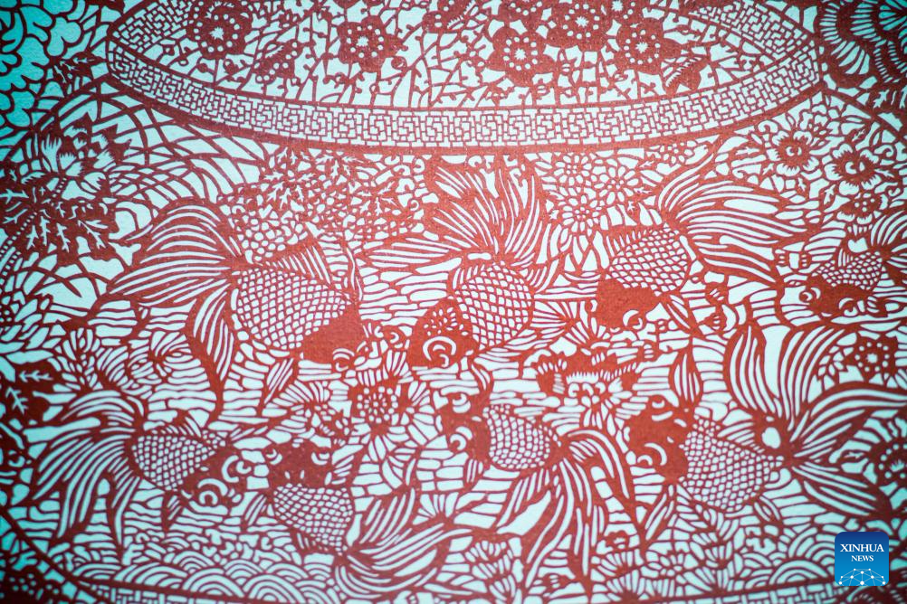 This photo taken on March 12, 2024 shows a part of a paper knife cutting displayed at the Yueqing dragon lantern paper knife cutting institute in Yueqing City, east China's Zhejiang Province.(Xinhua/Jiang Han)