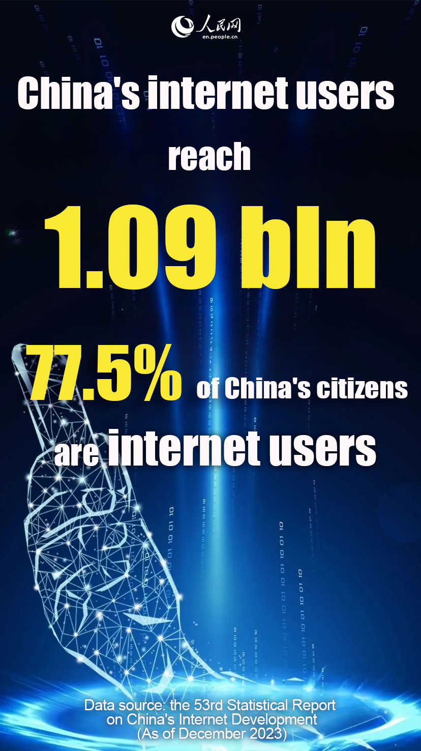 BEIJING, March 22 (Xinhua) -- As of December 2023, China had over 1.09 billion internet users, statistics from a report by the China Internet Network Information Center showed.