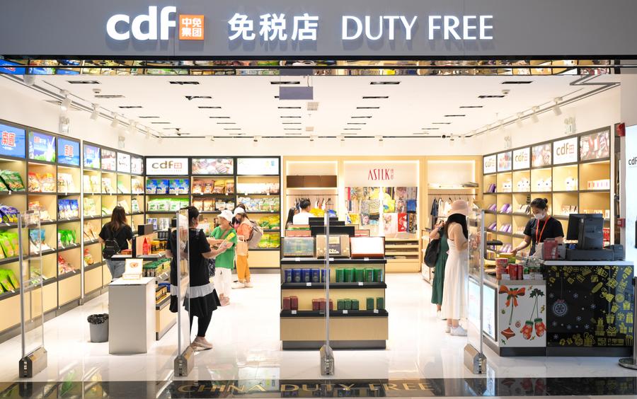 This photo taken on July 26, 2023 shows passengers selecting duty-free products at Phoenix International Airport in Sanya, south China's Hainan Province. (Xinhua/Yang Guanyu)