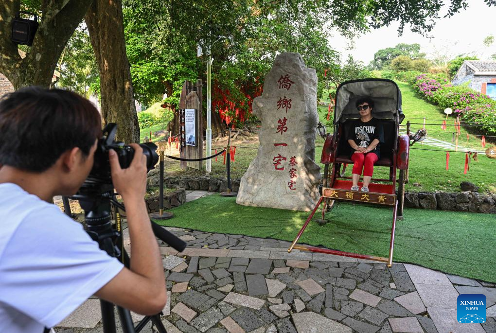 A visitor poses for photos in Liuke Village of Boao Town in Qionghai, south China's Hainan Province, March 16, 2024. In recent years, Qionghai has built an exquisite array of rural clusters driven by Boao Forum for Asia and Boao Lecheng International Medical Tourism Pilot Zone. Nanqiang, Shamei, Mocun, Liuke and Dalupo villages have gradually become model villages of both local and international charm. (Xinhua/Pu Xiaoxu)