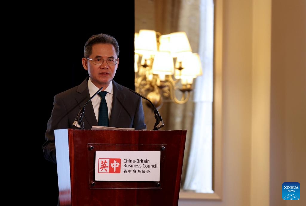 Chinese Ambassador to Britain Zheng Zeguang addresses the 2024 UK-China Business Forum in London, Britain, March 20, 2024. The forum, organized by the China-Britain Business Council, a major business network promoting trade and investment with China in the UK, attracted nearly 200 representatives from the business communities of both countries. (Xinhua/Li Ying)