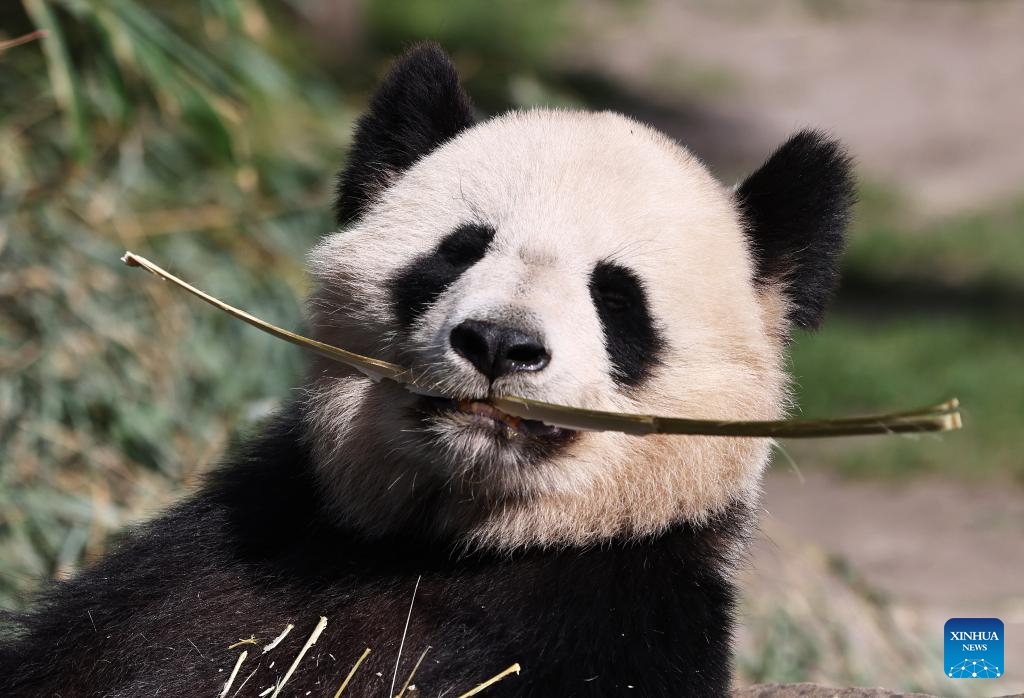 Giant panda Huan Huan is seen at the Beauval Zoo in Saint-Aignan, France, March 22, 2024. (Xinhua/Gao Jing)