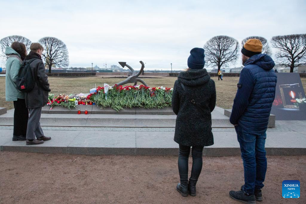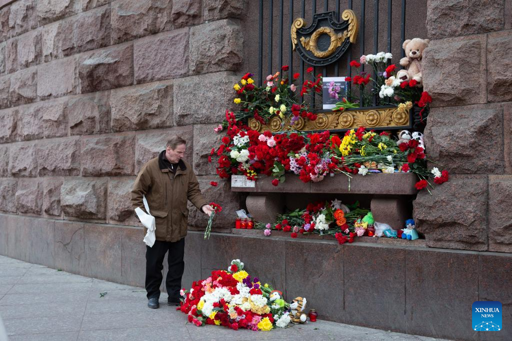 People mourn for victims of Moscow terrorist attack in St. Petersburg, Russia, March 23, 2024. (Photo by Irina Motina/Xinhua)