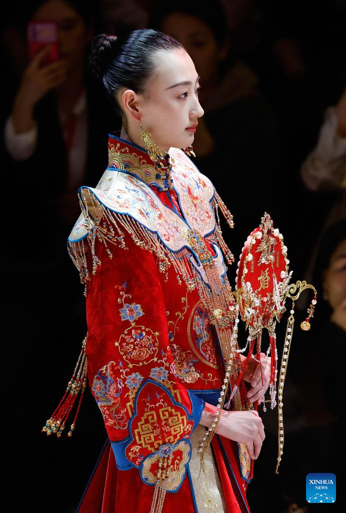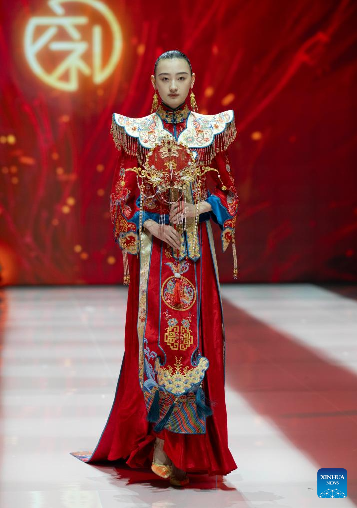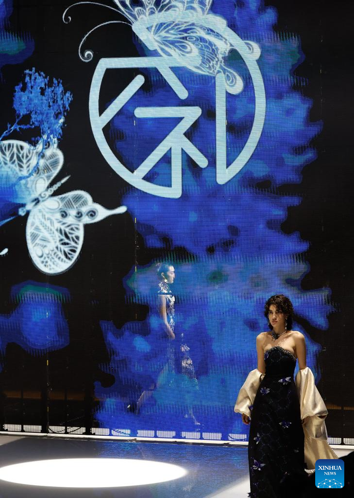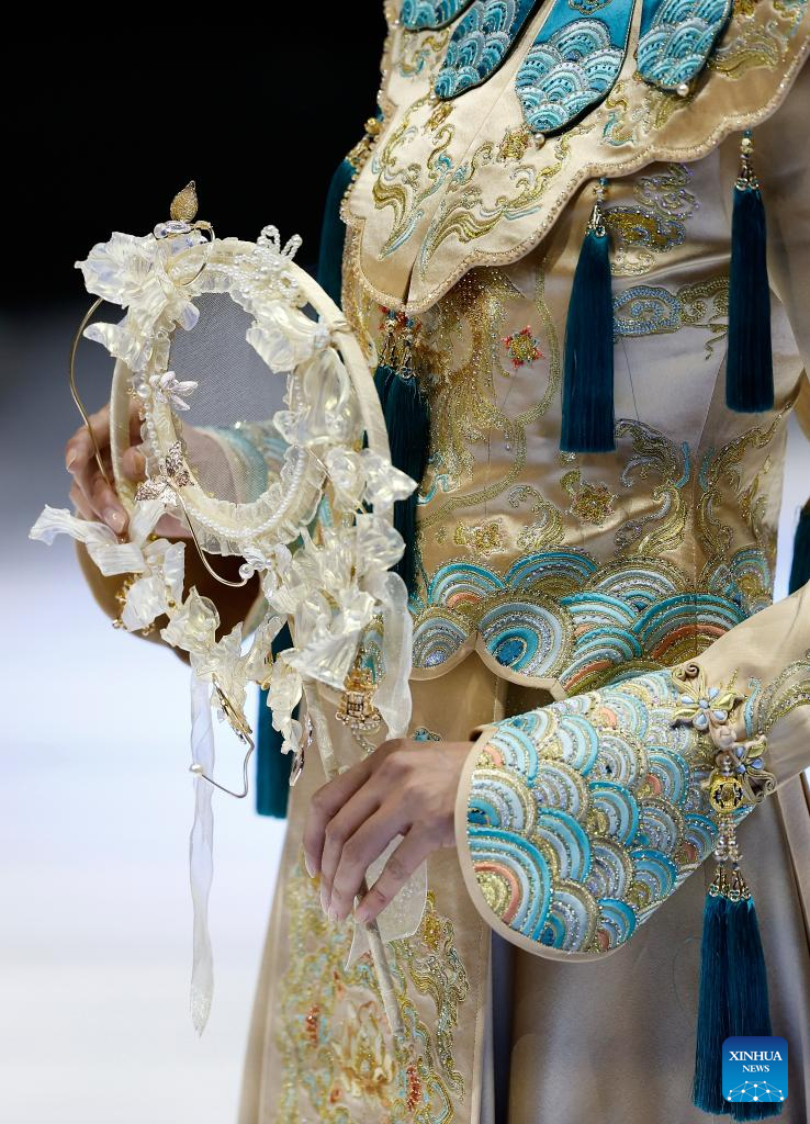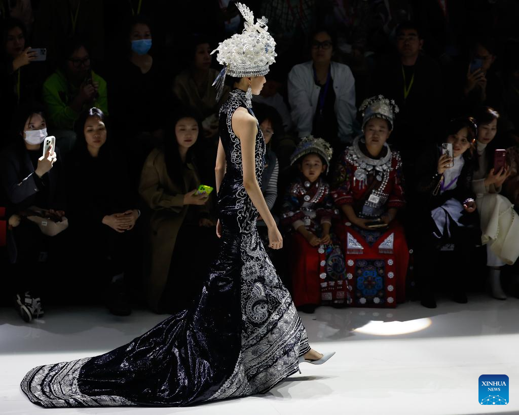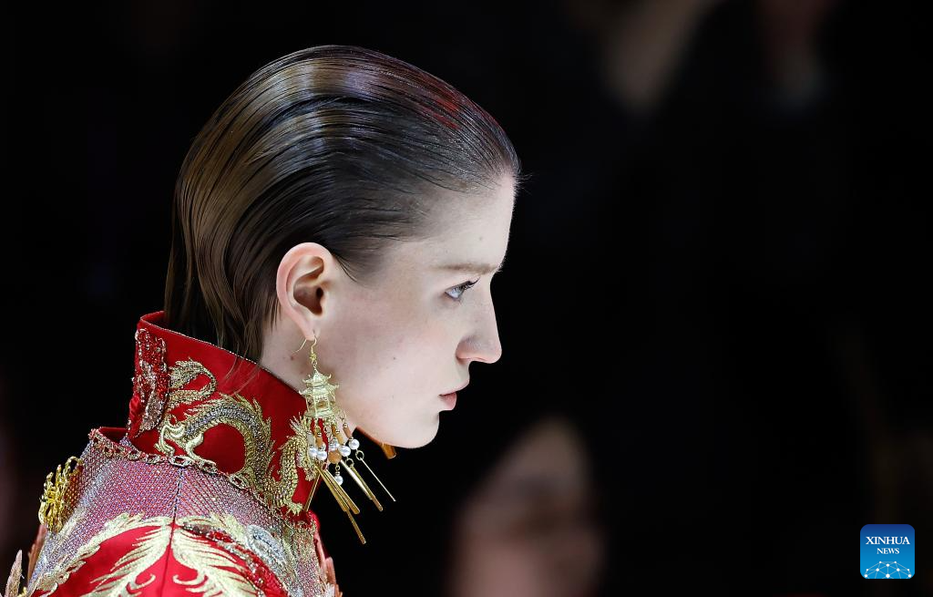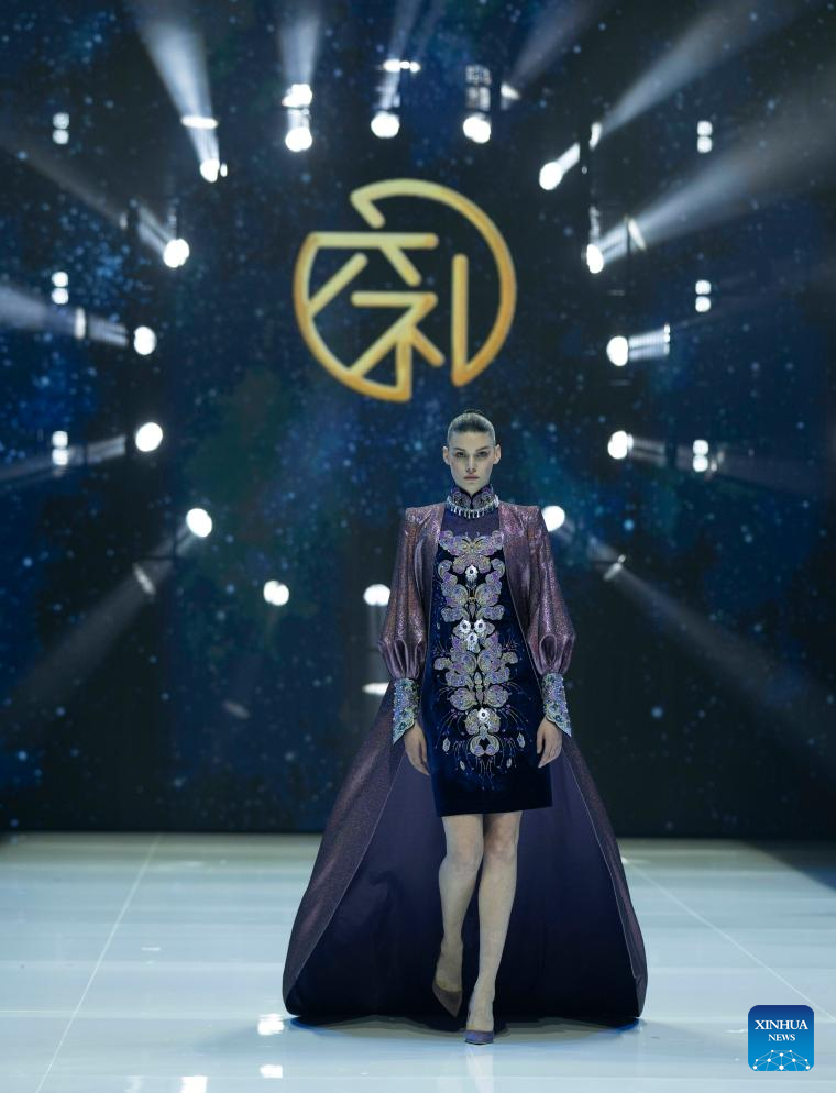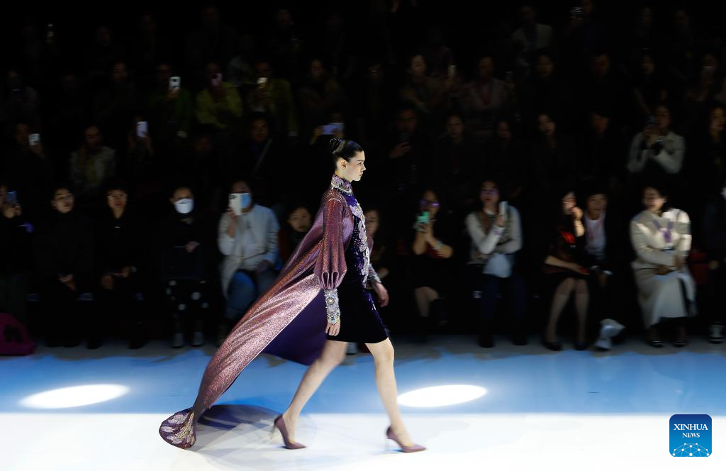 A model presents a creation of Loolayy during the China Fashion Week A/W 2024 in Beijing, capital of China, March 23, 2024. The China Fashion Week A/W 2024 kicked off on Saturday here, and will last until March 31. (Xinhua/Wang Lili)