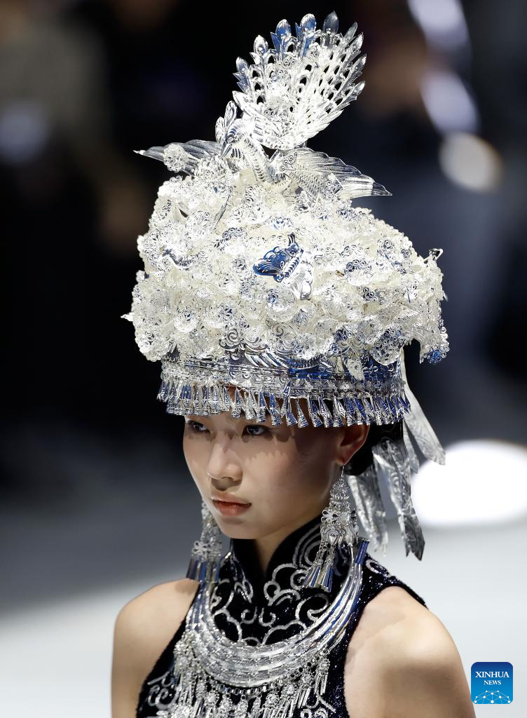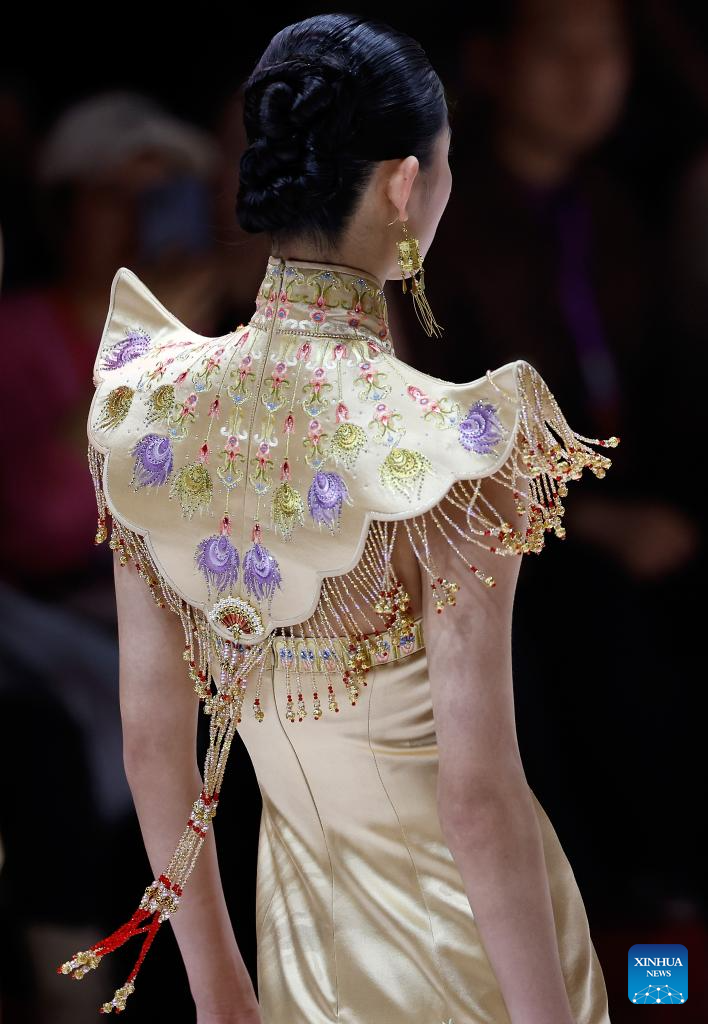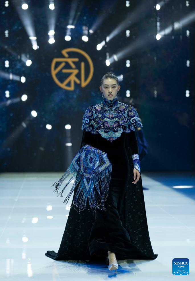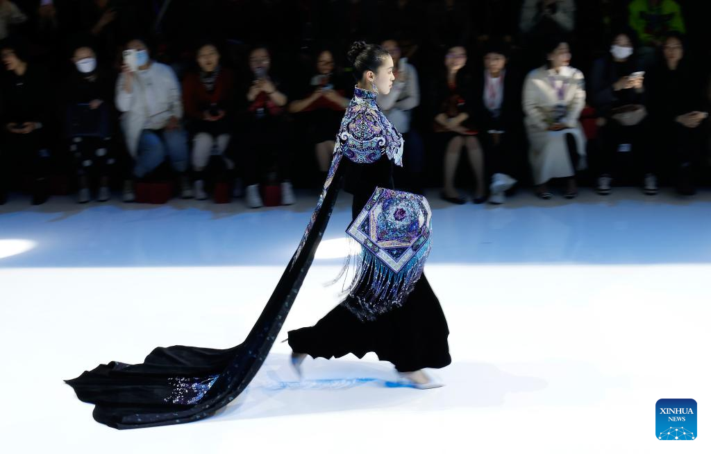 A model presents a creation of Loolayy during the China Fashion Week A/W 2024 in Beijing, capital of China, March 23, 2024. The China Fashion Week A/W 2024 kicked off on Saturday here, and will last until March 31. (Xinhua/Cai Yang)