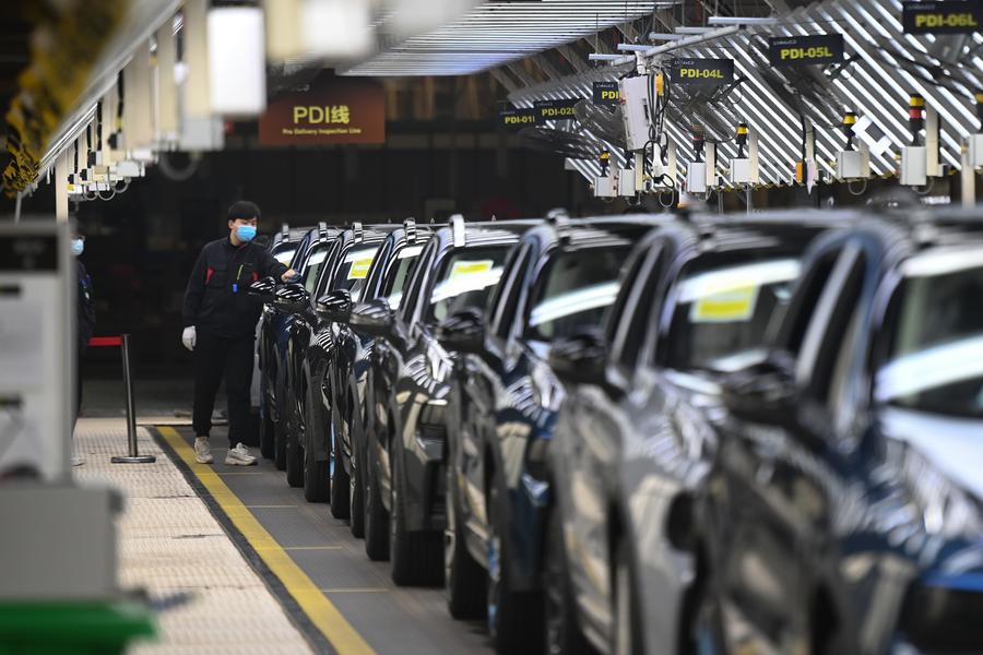 An employee works at an automobile company in Yuyao, east China's Zhejiang Province, Jan. 5, 2023. (Xinhua/Huang Zongzhi)