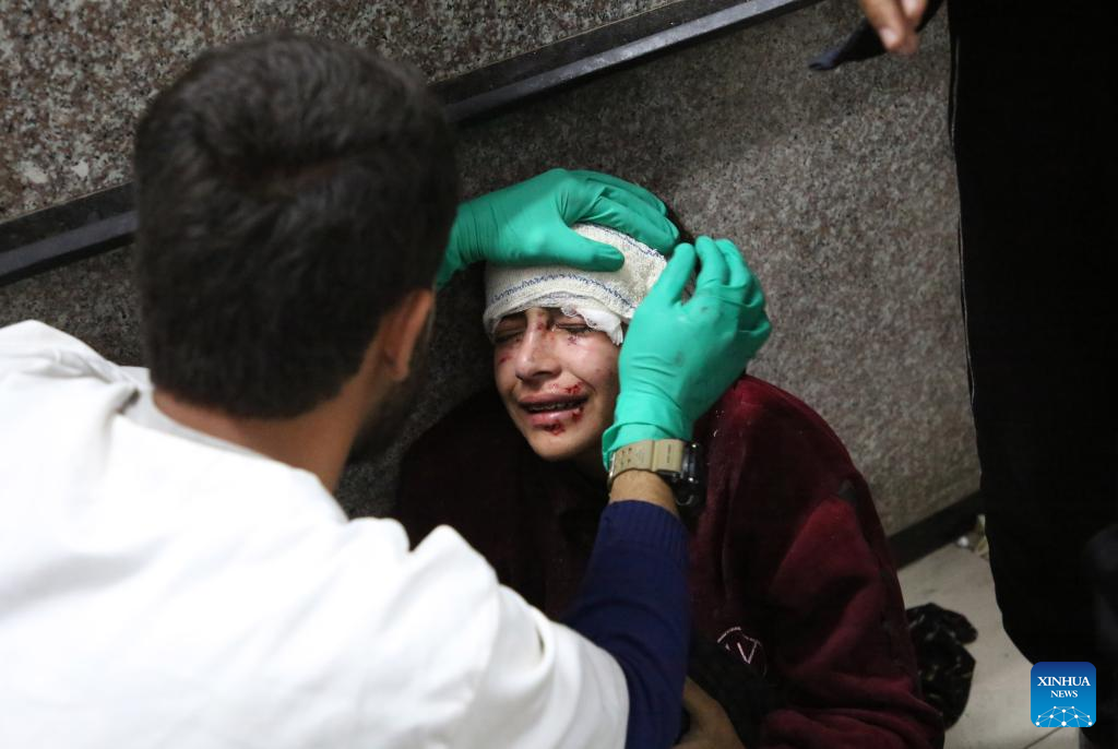 A wounded person receives treatment at a local hospital in the southern Gaza Strip city of Rafah, on March 24, 2024. The Palestinian death toll in the Gaza Strip from ongoing Israeli attacks has risen to 32,333, the Hamas-run Health Ministry said in a press statement on Monday. (Photo by Khaled Omar/Xinhua)