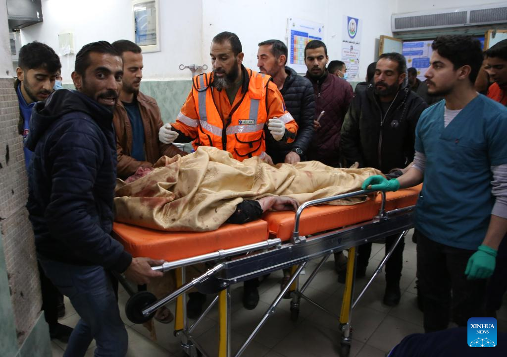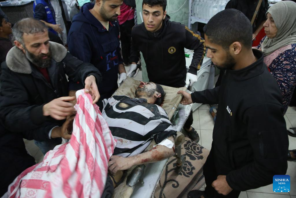 A wounded man is transferred to a local hospital in the southern Gaza Strip city of Rafah, on March 24, 2024. The Palestinian death toll in the Gaza Strip from ongoing Israeli attacks has risen to 32,333, the Hamas-run Health Ministry said in a press statement on Monday. (Photo by Khaled Omar/Xinhua)
