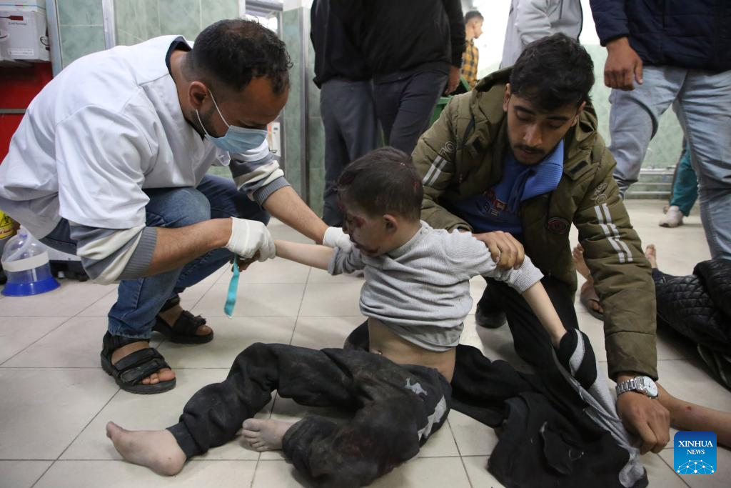 A child receives treatment at a local hospital in the southern Gaza Strip city of Rafah, on March 24, 2024. The Palestinian death toll in the Gaza Strip from ongoing Israeli attacks has risen to 32,333, the Hamas-run Health Ministry said in a press statement on Monday. (Photo by Khaled Omar/Xinhua)