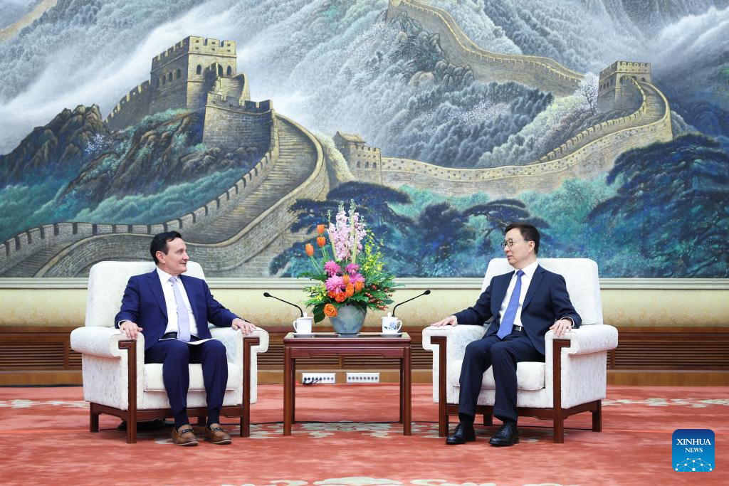 BEIJING, March 25 (Xinhua) -- Chinese Vice President Han Zheng met separately with ExxonMobil CEO Darren Woods and AstraZeneca CEO Pascal Soriot on Monday in Beijing.