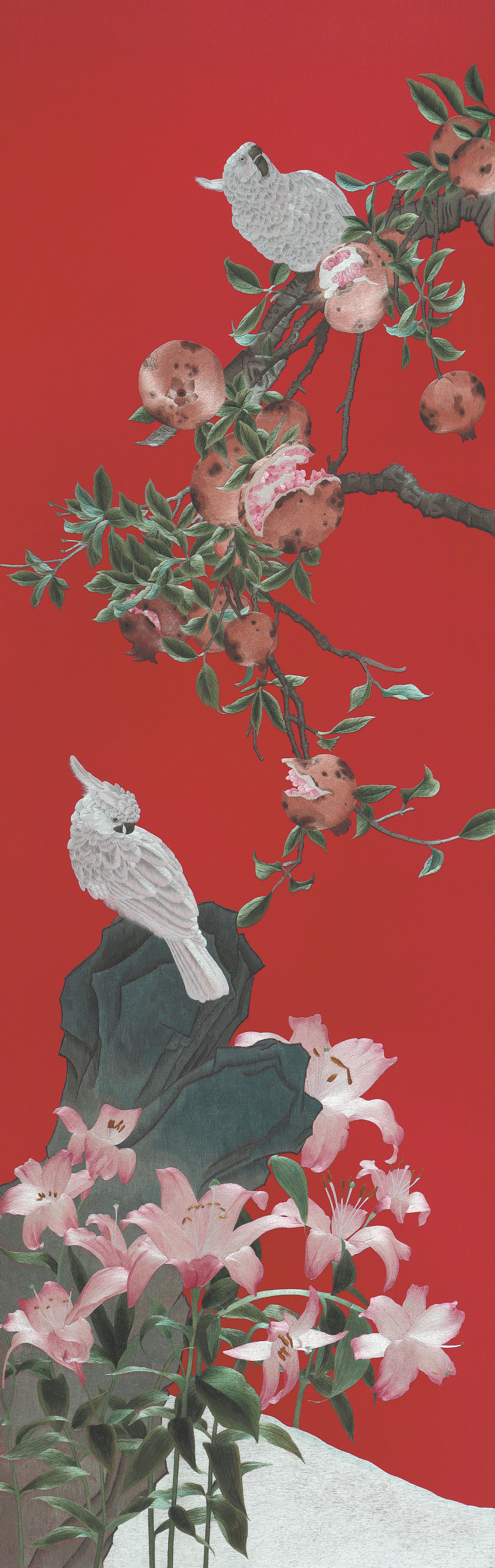 Animals and flowers are iconic subjects in the works of Fu Xianghong. [Photo by Gao Erqiang/China Daily]