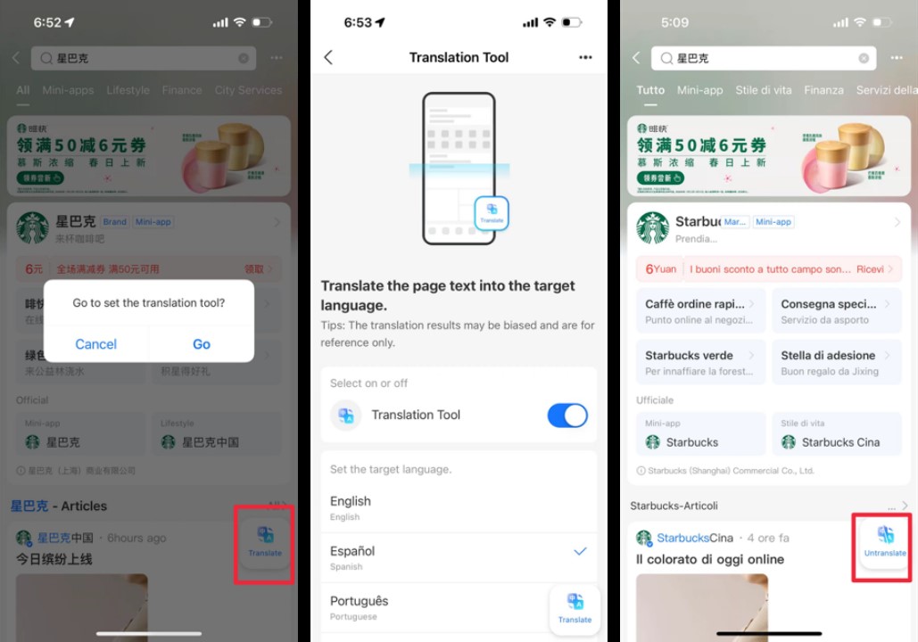 A pilot multilingual translation service is launched on the application of the Chinese payment institution Alipay. (Photo from Alipay)