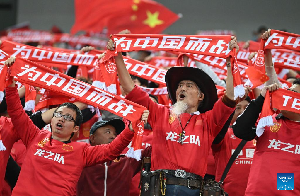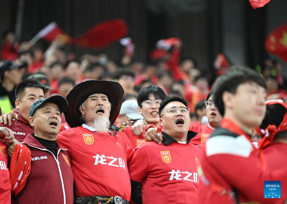 Fans of China are seen before the group C match of 2026 FIFA World Cup Asian qualifiers between China and Singapore in north China's Tianjin Municipality on March 26, 2024. (Xinhua/Sun Fanyue)