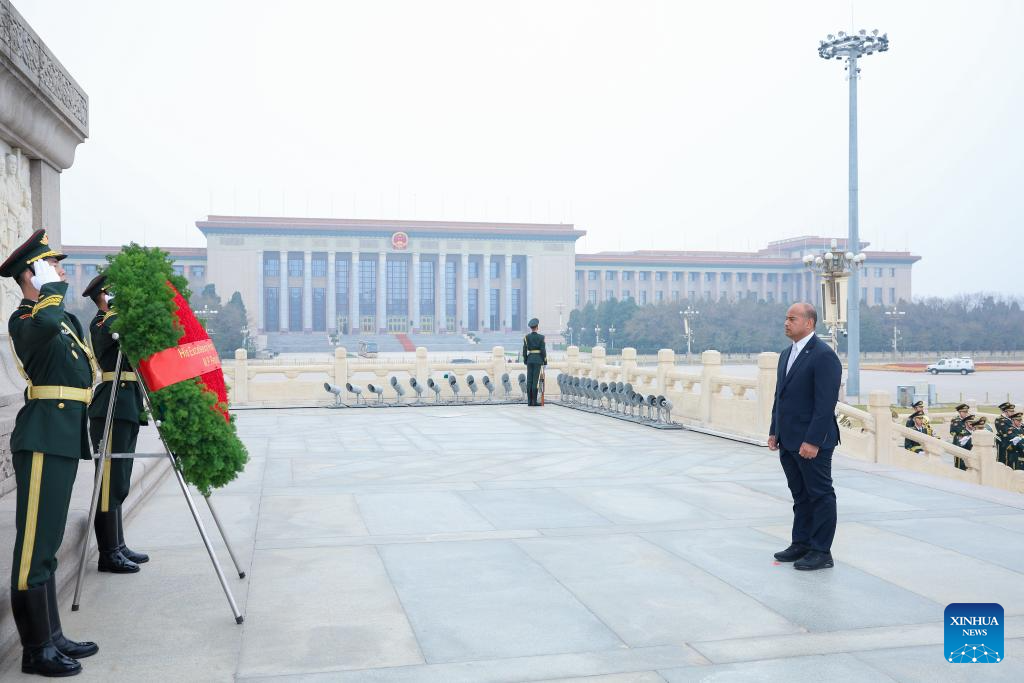 Nauruan president lays wreath at Monument to People's Heroes in Beijing
