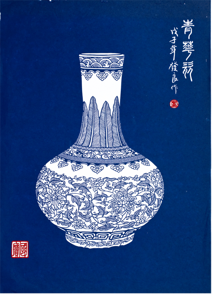 This undated photo shows a paper knife cutting artwork of blue-and-white porcelain by Lu Faliang in Yueqing City, east China's Zhejiang Province. (Xinhua)