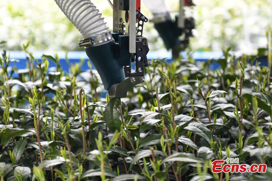 Tea picking robot operates in harvest season