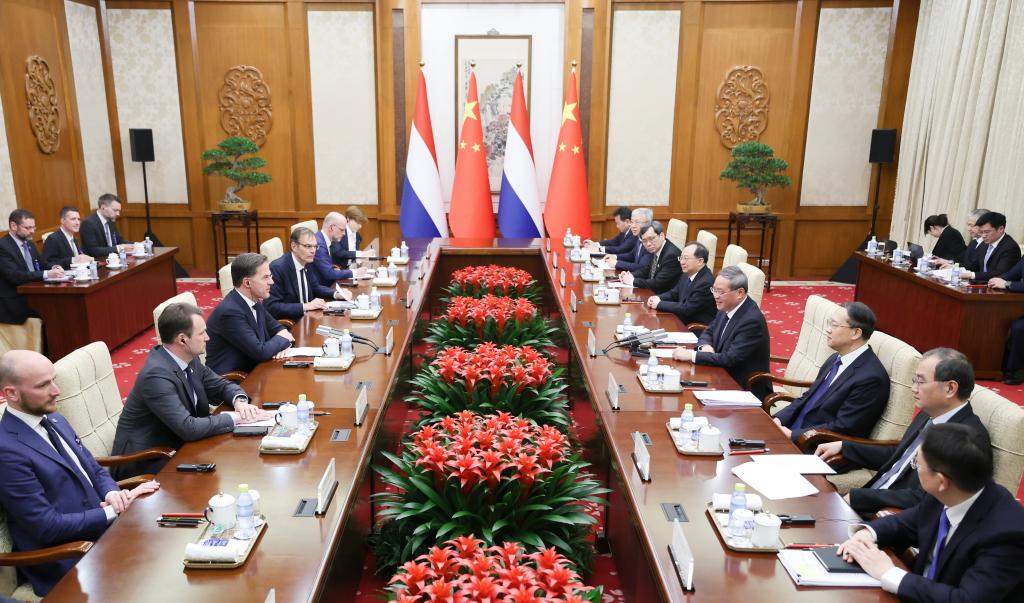 China is willing to work with the Netherlands to continue to carry forward the spirit of open and pragmatic cooperation, promote the steady development of bilateral relations and achieve more win-win results, Li said.