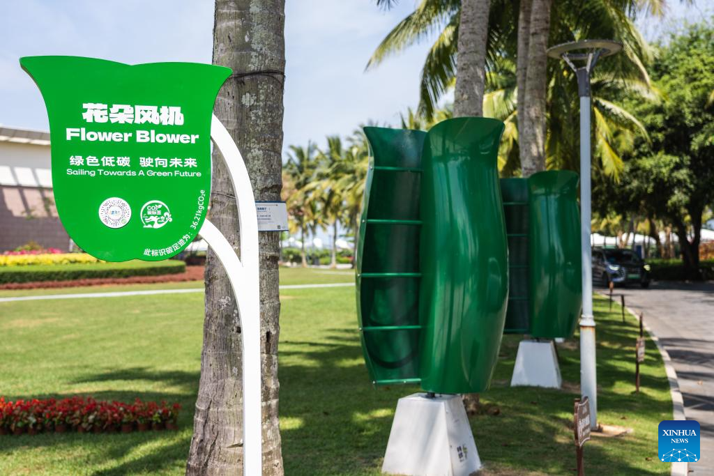 This photo taken on March 22, 2024 shows wind energy collectors in the Boao near-zero carbon demonstration zone in Boao, south China's Hainan Province. The Boao near-zero carbon demonstration zone was put into operation before Boao Forum for Asia (BFA) Annual Conference 2024.