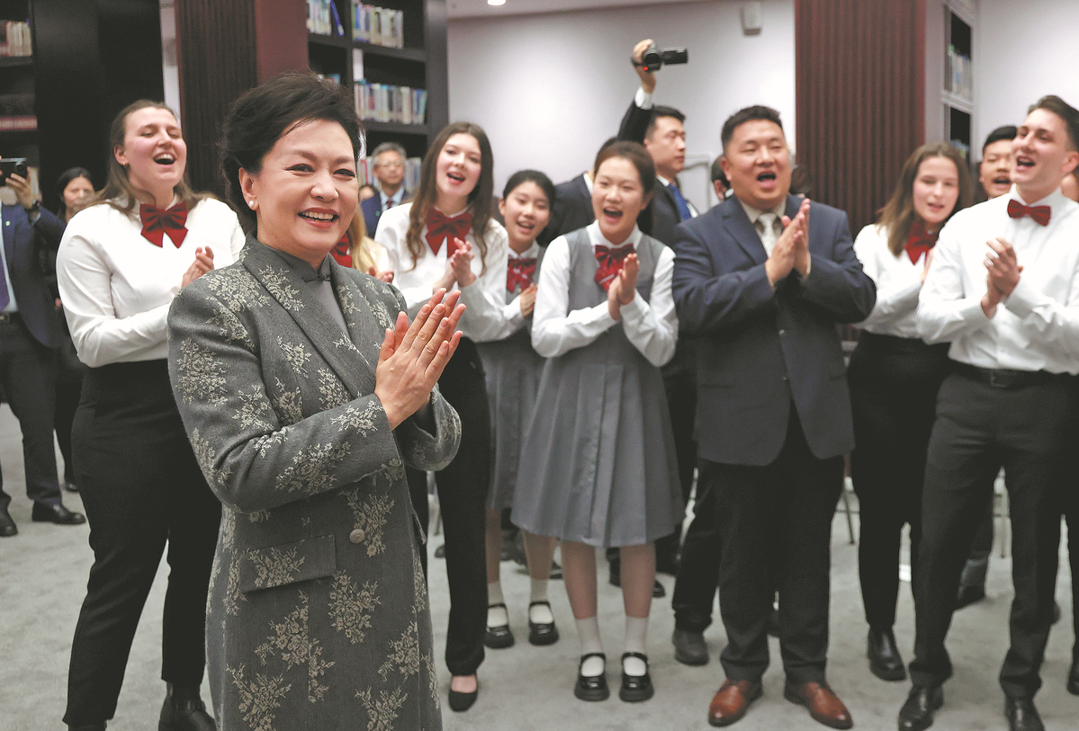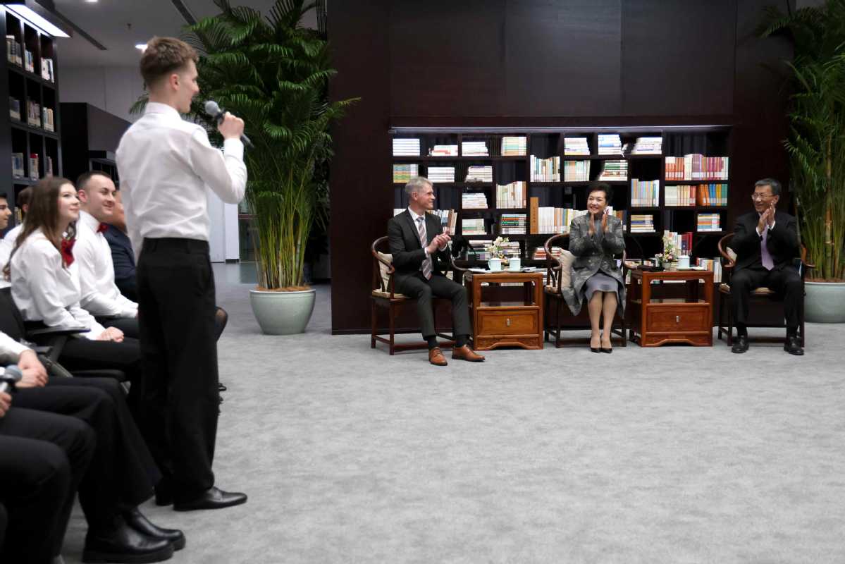 Peng Liyuan, wife of President Xi Jinping, encouraged members of Germany's Burg Chinese Chorus on Thursday to continue to use music as the "golden key" to unlock a new world of Chinese language and experience the charm of Chinese culture through beautiful songs, as they did 10 years ago.