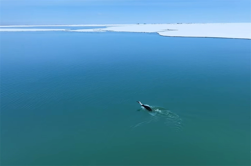 Photo taken on March 25, 2024 shows the thawed surface of Qinghai Lake in Gangcha county, Haibei Tibetan Autonomous Prefecture, northwest China's Qinghai Province. (Photo/Dang Zhi)