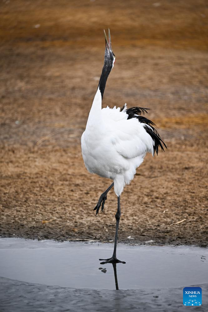 Red-crowned cranes are seen at Zhalong National Nature Reserve in Qiqihar, northeast China's Heilongjiang Province, March 29, 2024. Zhalong National Nature Reserve provides a major habitat for red-crowned cranes and other wildlife. (Xinhua/Ding He)