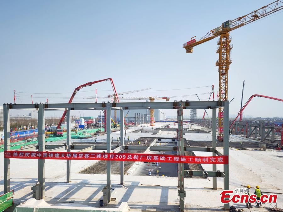 The foundation construction of the largest single building of the 2nd Airbus Tianjin A320 Family Final Assembly Line Project was completed on Sunday. The project, aimed to manufacture both A320 and A321neo aircraft, is expected to enter into service by the end of 2026.