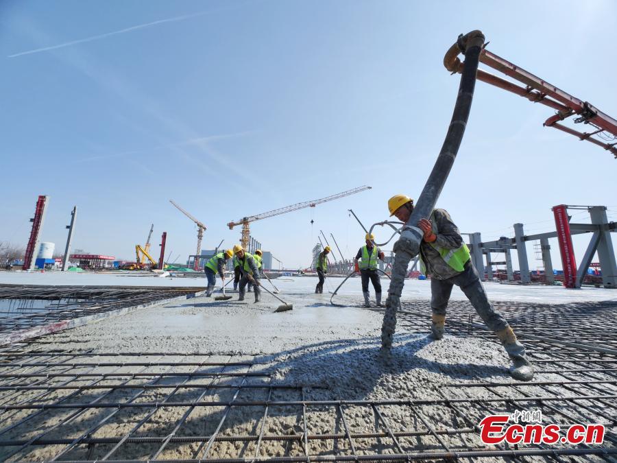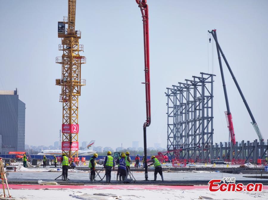 Workers work at the construction site of the 2nd Airbus A320 Family Final Assembly Line Project in Tianjin, March 31, 2024. (Photo: China News Service/Tong Yu)