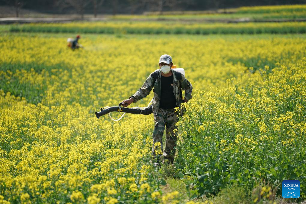A farmer works at a field in Liangshan Township of Nanzheng District in Hanzhong, northwest China's Shaanxi Province, March 21, 2024. (Xinhua/Shao Rui)