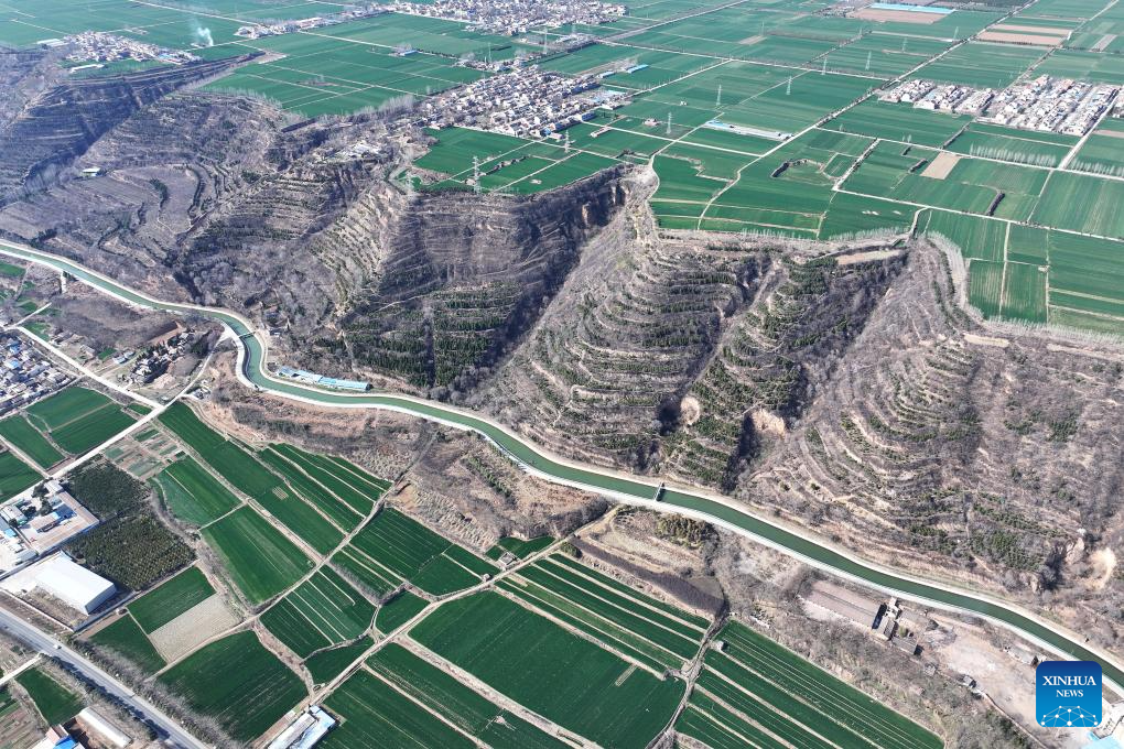 An aerial drone photo taken on March 13, 2024 shows the scenery of Chencang District in Baoji, northwest China's Shaanxi Province. (Xinhua/Shao Rui)