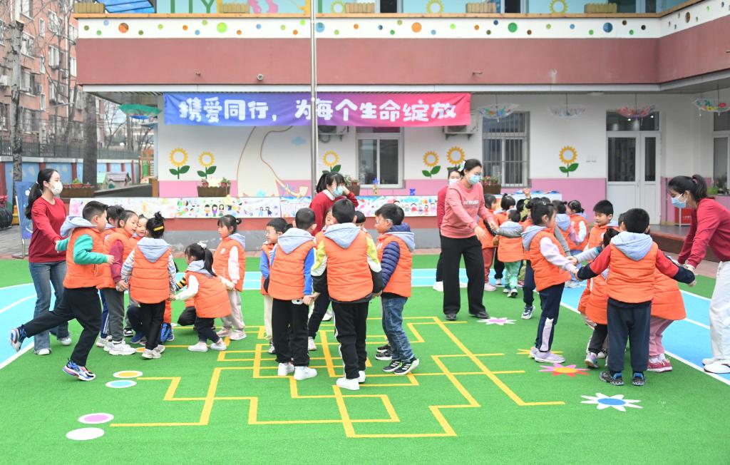 Children play games at Peking University Health Science Center Kindergarten in Beijing, capital of China, March 27, 2024. (Xinhua/Ren Chao)