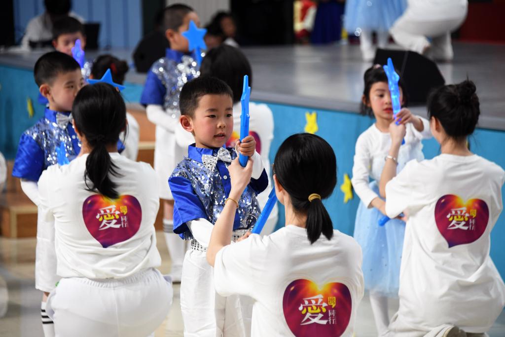 Children from Peking University Health Science Center Kindergarten dance with their families and teachers during a theme activity on promoting social integration for people with autism spectrum disorder (ASD) in Beijing, capital of China, April 1, 2024. (Xinhua/Ren Chao)