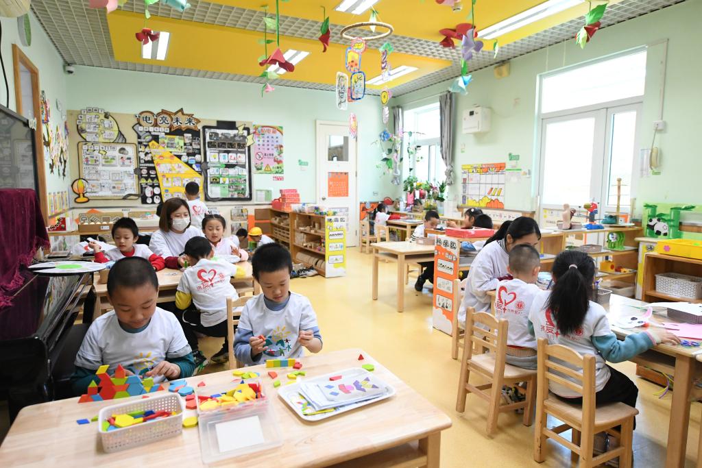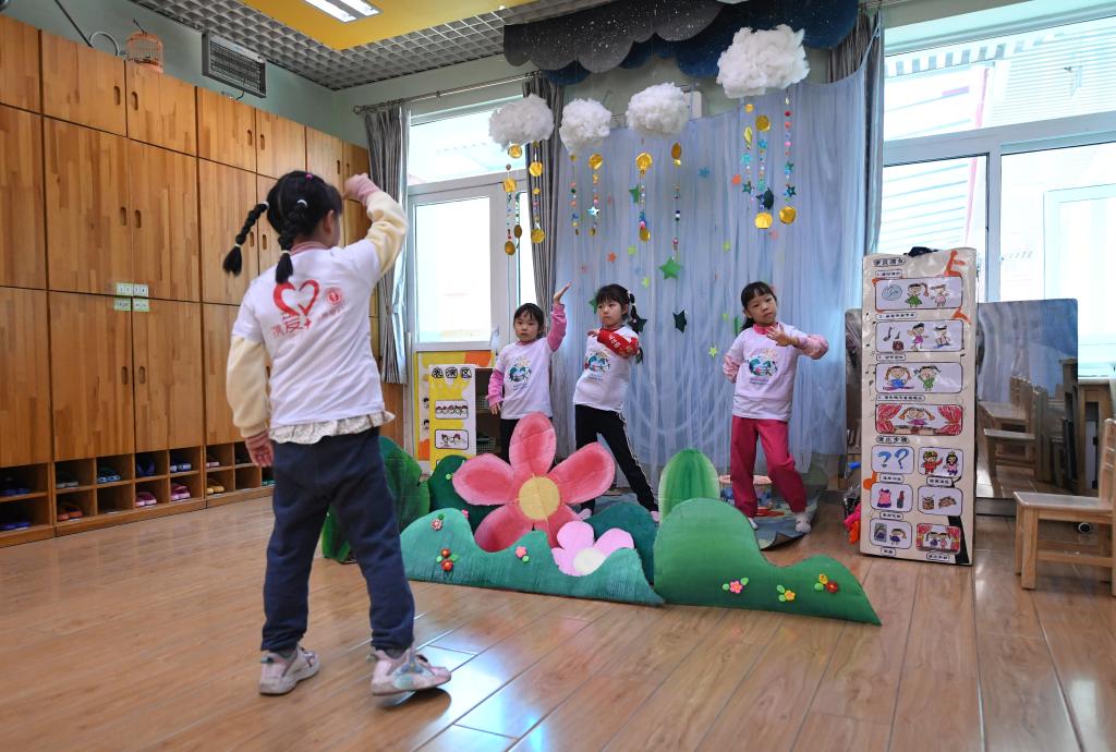 Children play games in Peking University Health Science Center Kindergarten in Beijing, capital of China, April 2, 2024. (Xinhua/Ren Chao)
