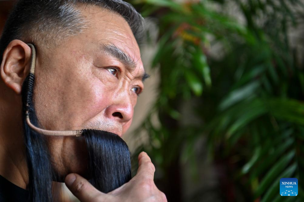 Wu Lingyun prepares for a performance in Yingze District of Taiyuan, north China's Shanxi Province, Feb. 2, 2024. (Xinhua/Yang Chenguang)