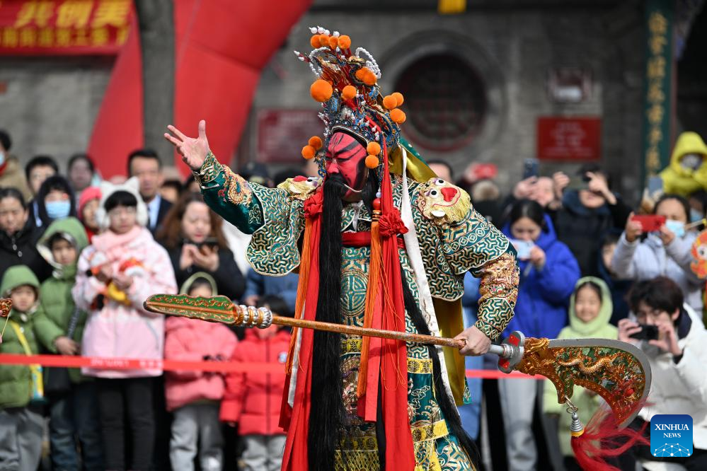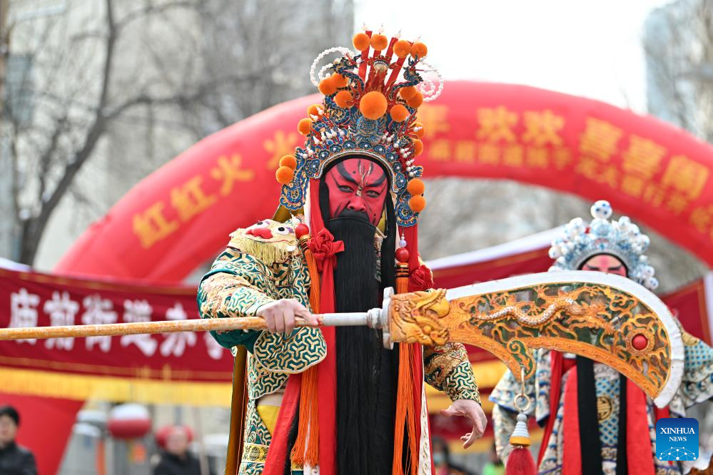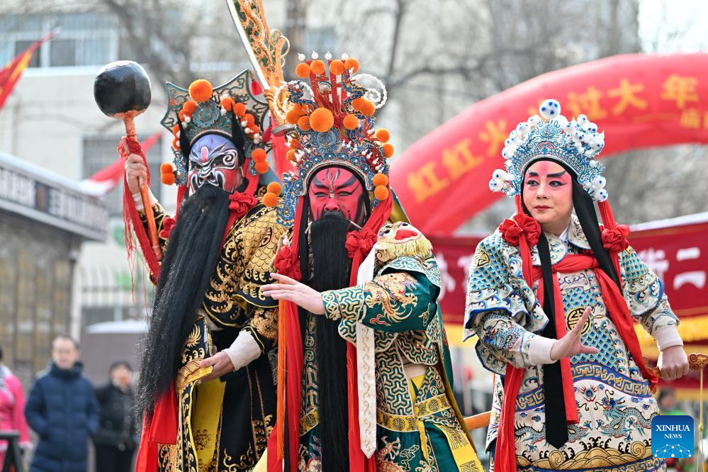 Wu Lingyun (C) stages a performance in Yingze District of Taiyuan, north China's Shanxi Province, Feb. 2, 2024. (Xinhua/Yang Chenguang)