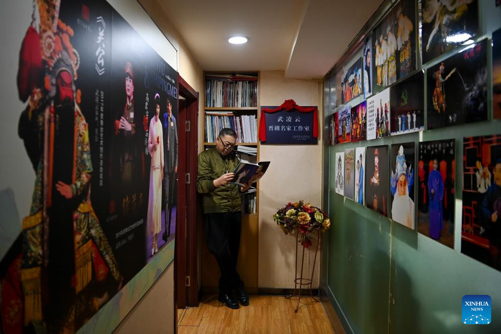 Wu Lingyun studies a play at the Jin Opera art research institute in Taiyuan, north China's Shanxi Province, Feb. 6, 2024. (Xinhua/Yang Chenguang)