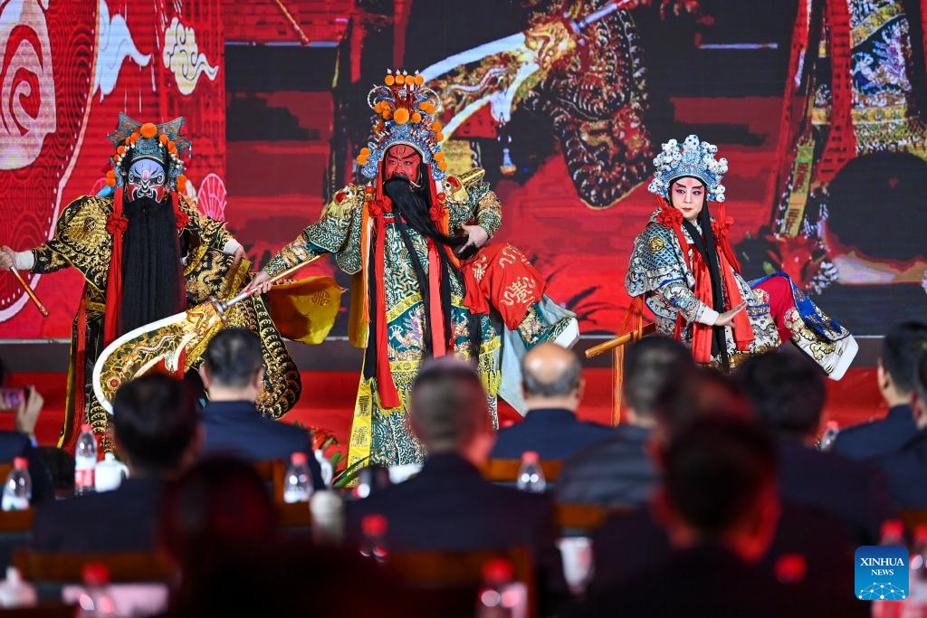 Wu Lingyun (C) stages a performance in Yingze District of Taiyuan, north China's Shanxi Province, Feb. 23, 2024. (Xinhua/Zhan Yan)