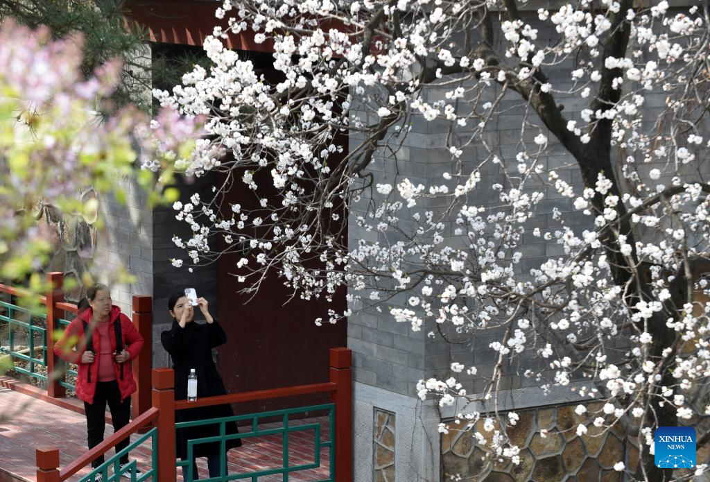Tourists visit Yuanmingyuan Park in Beijing, capital of China, April 2, 2024. Blooming flowers and traditional gardens attracted many visitors to enjoy spring at Yuanmingyuan Park in Beijing. (Xinhua/Luo Xiaoguang)