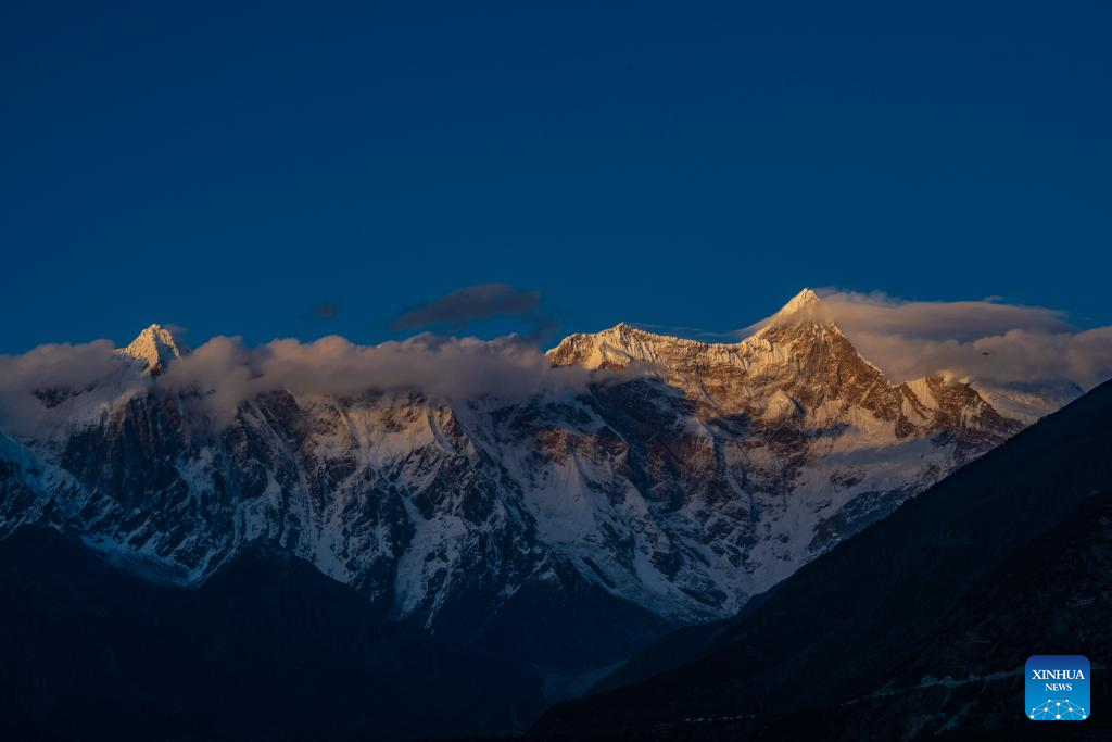 This photo taken on April 1, 2024 in Suosong Village of Nyingchi, southwest China's Xizang Autonomous Region, shows the scenery of Mount Namjagbarwa. (Xinhua/Sun Fei)