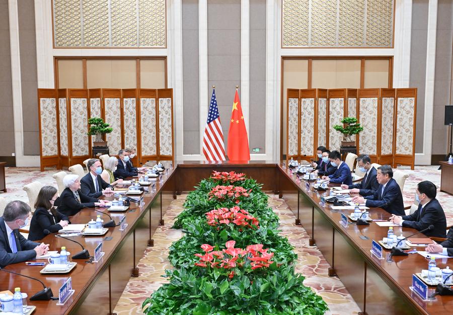 Chinese Vice Premier He Lifeng meets with U.S. Treasury Secretary Janet Yellen in Beijing, capital of China, July 8, 2023. (Xinhua/Yue Yuewei)