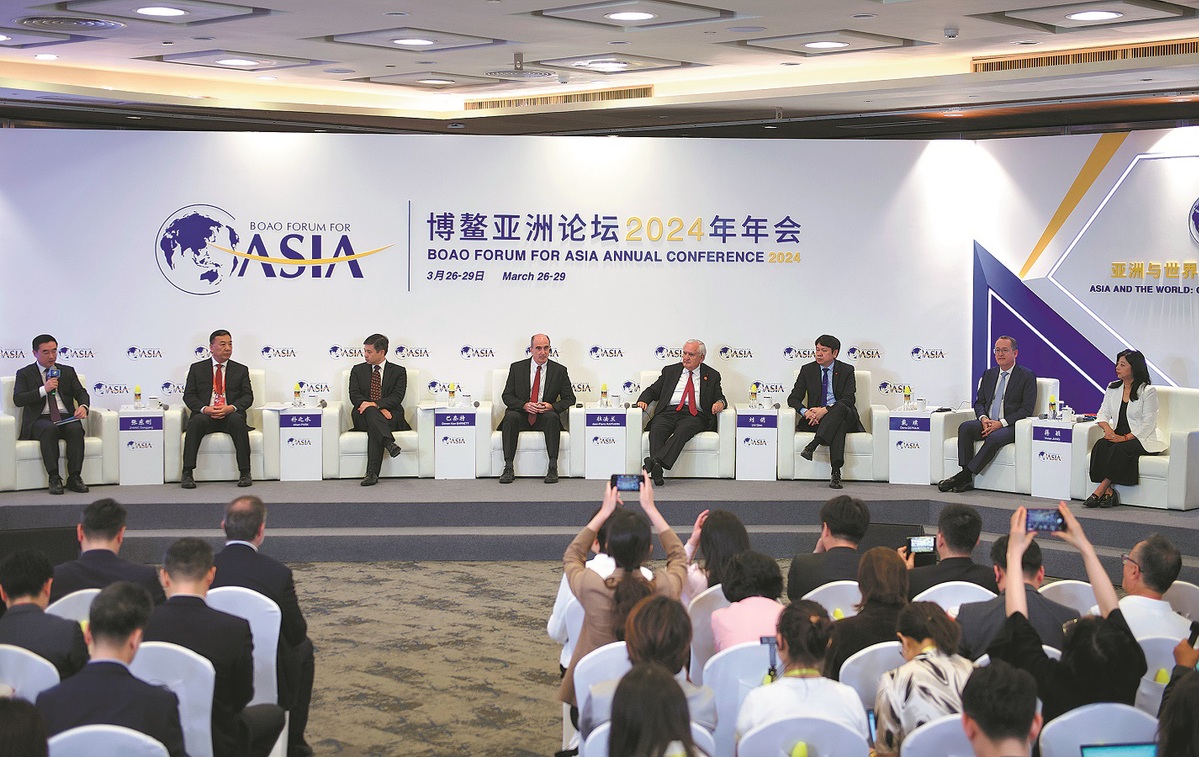 Participants discuss the outlook for the Chinese economy during the Boao Forum for Asia Annual Conference 2024 in Boao, Hainan province, on Thursday. FENG YONGBIN/CHINA DAILY