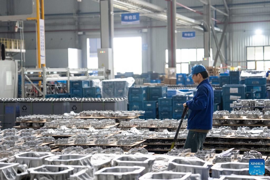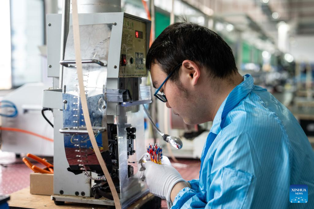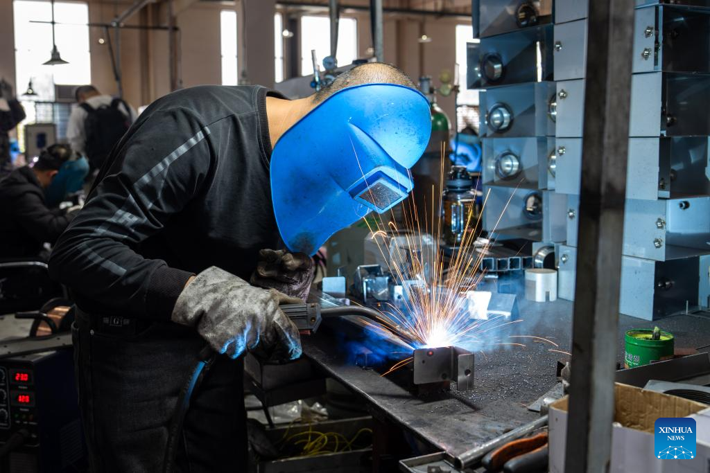 A man works at Changsha Boda Technology Industry Co., Ltd, a manufacturer and supplier of automobile parts, in Liuyang City, central China's Hunan Province, April 9, 2024. (Xinhua/Chen Sihan)