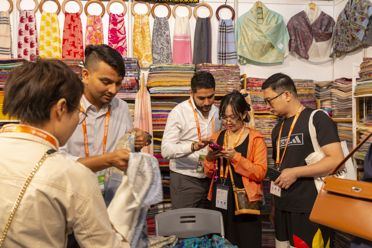 Visitors purchase cashmere products through mobile payment methods during the 20th China-ASEAN Expo in Nanning, Guangxi Zhuang autonomous region, in September. [Photo/China Daily]