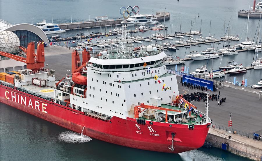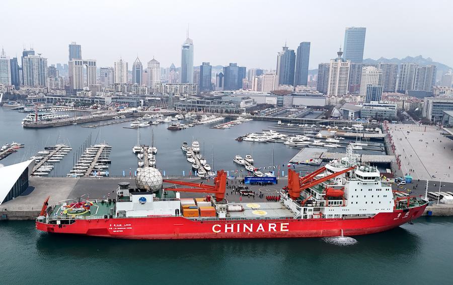 China's icebreaker Xuelong arrives in Qingdao after Antarctic expedition
